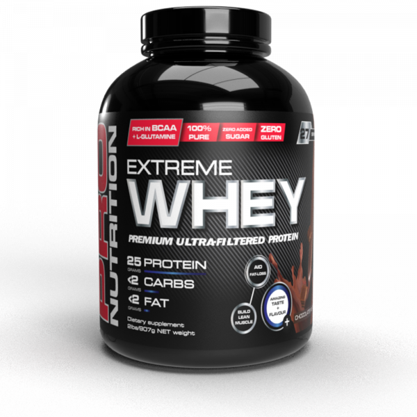 PRO NUTRITION EXTREME WHEY is a premium quality Whey Protein which has been instantized for easy mixing and formulated for great taste. This product contains no added fats or carbohydrates which makes it the ideal choice for adding lean muscle-building protein into your diet. Extreme Whey Protein is rich in Glutamine and Branched Chain Amino Acids (BCAA’s) which accelerate recovery from intense training. Extreme Whey Protein has been scientifically manufactured using low-temperature filtration technology which preserves the integrity of the protein while avoiding denaturation. This ensures that the Whey Protein micro fractions remain biologically active so that the user will reap the immuno-enhancing, muscle building benefits inherent in this amazing product.